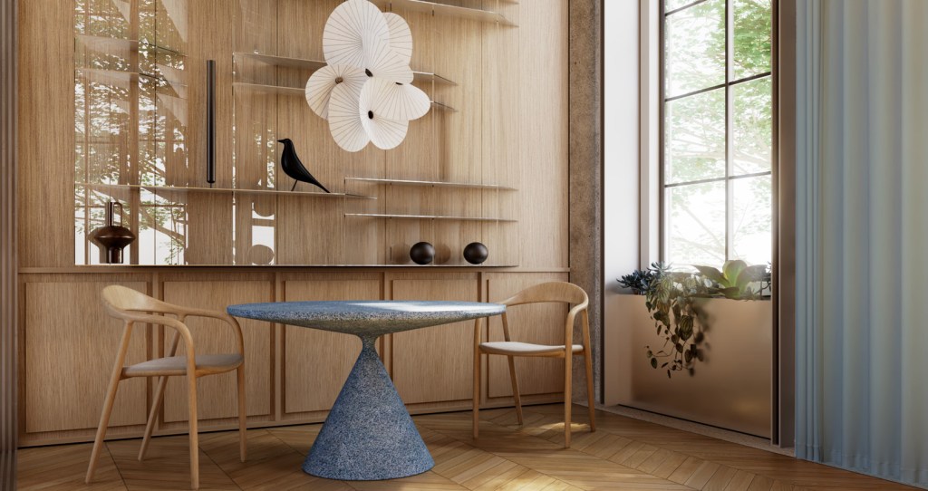 L’héritage industriel du bâtiment se reflète encore à travers les fenêtres et les cloisons mobiles qui structurent l’espace. La salle à manger et le salon sont enveloppés de bois, créant un coin chaleureux et accueillant, tandis que la cuisine met en valeur l’esprit industriel du lieu.